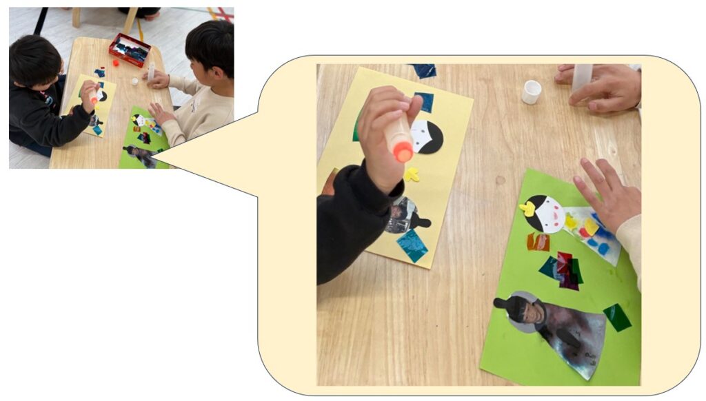 自分がお内裏様になり、制作活動もより一層楽しく♪自分の男雛と女雛を作って、ひな祭りに親近感が湧いたかな~💓